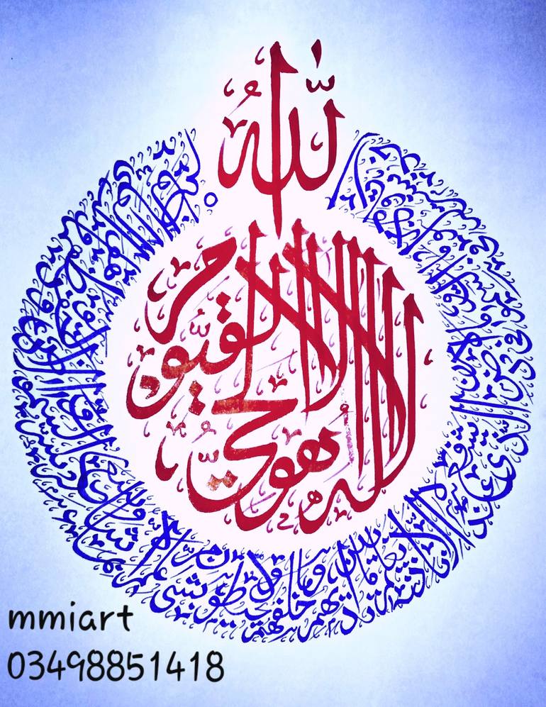 It is the calligraphy art with a fine subject.i made the calligraphy on paper with two colors red and blue ,to have a fine is made by mmiarts who makes the sketches and paintings.