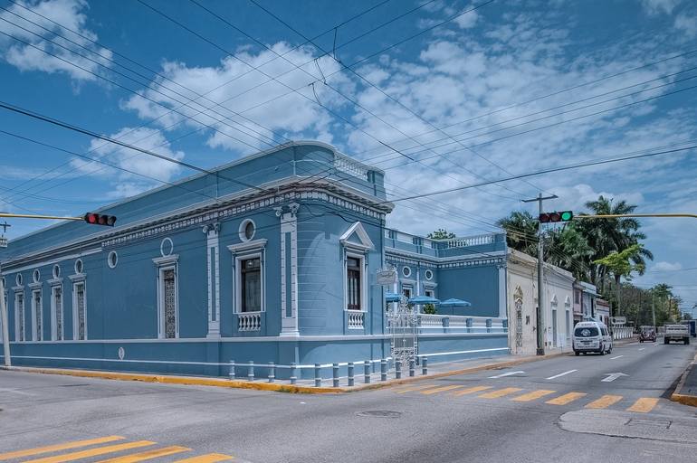 Casa azul is finest example of colonial architecture of city of Merida in Mexico