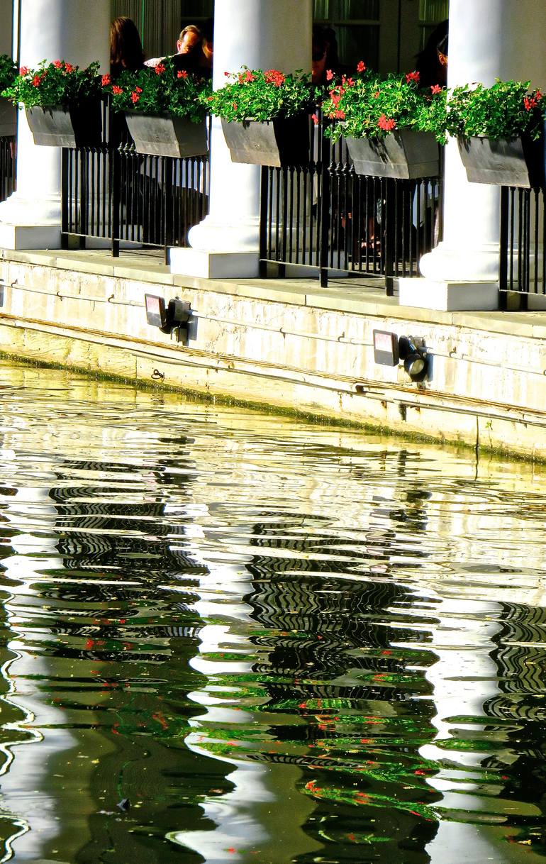 Central Park 6 - Boathouse Pavilion Reflections 2 is an abstract of the reflections of the columns of the Boathouse Pavilion in Central Park Lake.