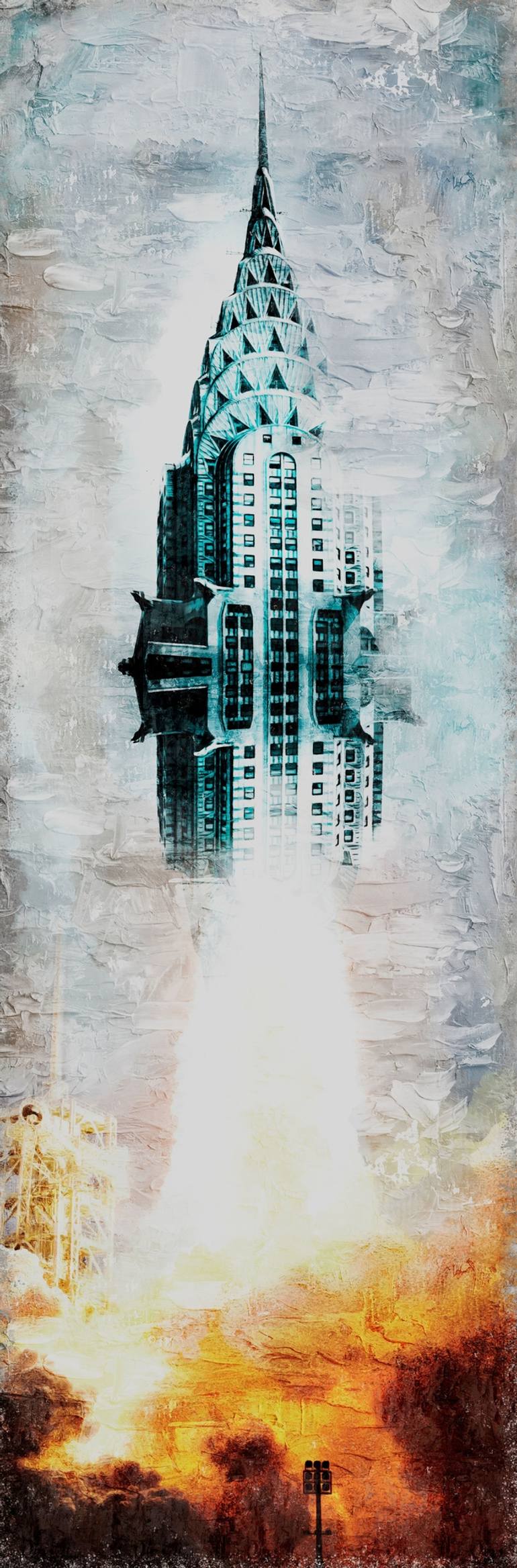 "Unrealism Collection" The third tallest New York skyscraper, recreated in visionary and transformative art, transcends the touchable, allowing an experience beyond the screen. Combusting creativity. A rocket or a building, the fusion of both? Both aim for the heavens. Limited Edition - 3 availab...
