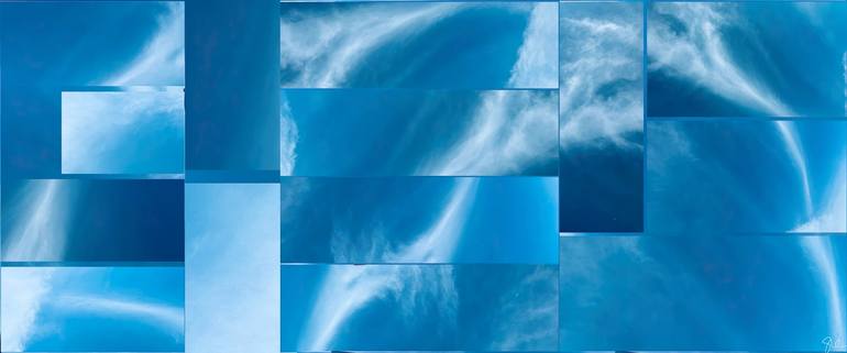 A cubist sky composition series of multiple photographs to form an arc or wave.