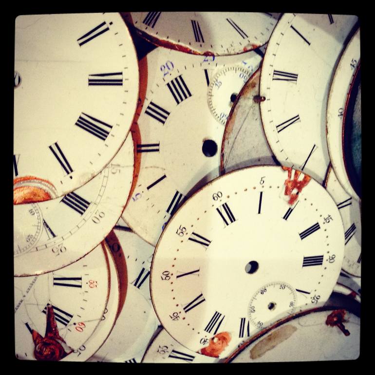 Walking the streets of Paris I came along this quirky little shop in the Montmartre filled with shelves of random bits of pieces, from nuts and bolts, dolls eyes and legs, beads, marbles, tiny toy parts, left overs from manufactured items never finished including these clock faces, discarded for the...