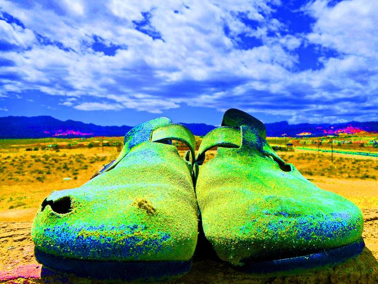 Birkenstock clogs worn by artist Dietmar Scherf at his home and studio on a daily basis for about 17 years. Art photograph by Dietmar Scherf (2017). Original (only 1 Original in existence in the world), signed, numbered (as 1/1), titled and dated by Artist Dietmar Scherf with Certificate of Authenti...