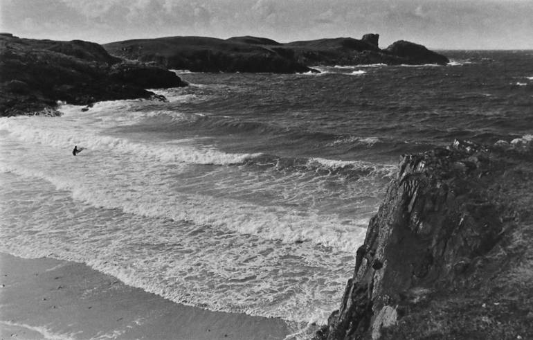 The photo was taken during my photo trip around Scotland in 2018. Lonely man trying to swim in icy water. Incredibly tough man. Print made by the author by hand in his studio, black and white enlargement Fomabrom Variant 112 mat paper Image size: 11 x 7,3 inches Paper size: 11,8 x 8,7 inches Edi...