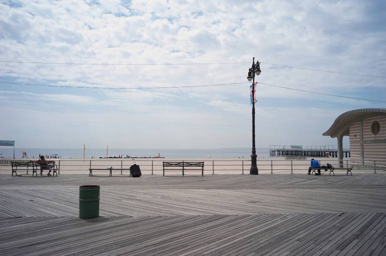 A morning walk on Coney Island during a hazy day made for a really interesting light. The lounging person on the benches, the lone suit case (not mine) gave a sense of desolation and yet a calm reassuring feeling that all is well. Shot with Leica M9P with an Elmarit 28 mm. Printed on Hahnemühle Fin...