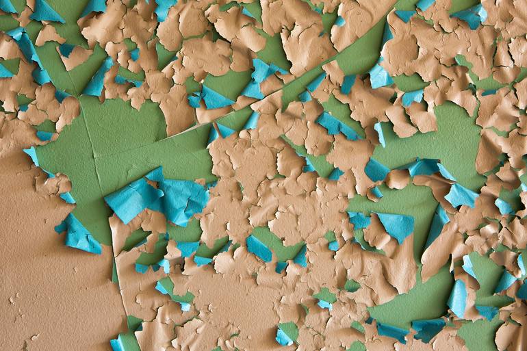 Rebecca Skinner’s “Crumbling” is a 20 x 30 inch abstract metal print. The color photograph is part of her “Transient” series. The peeling paint with colors of green, blue and peach has breathtaking depth and amazing detail. The frameless print has a satin finish and is infused directly into metal ma...