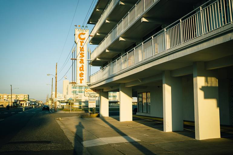 Crusader Oceanfront Resort vintage sign, Wildwood Crest, New Jersey - digital photographic print by travel photographer Jon Bilous