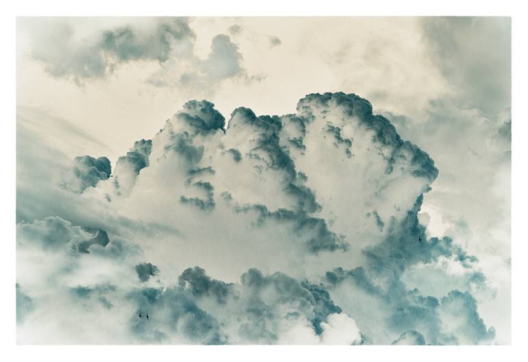 Cumulus is a series of cloud landscape photographs, processed in a partinversial technique, that abstracts the known into an abstract scale of scenery. It shows the infinity of wide open skies in contrast to groups of small flying birds. The edges of the images are slightly fethered out, like a tea...
