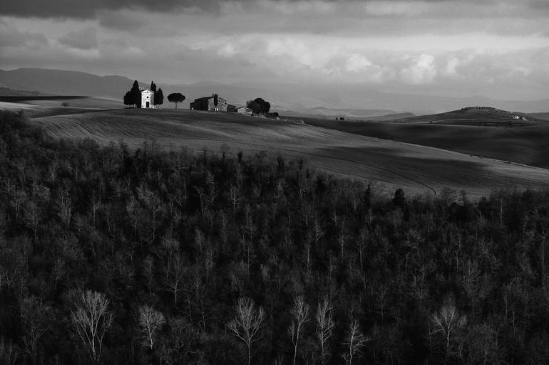 Usually, this landscaper looks like a cover of some calendars of typical tuscan views. But always in colors. So, I would show you a desaturated version from colors to monochrome, more dark and - I think - more interesting too. The place is Vitaleta, in Valdorcia, that was the location of several blo...