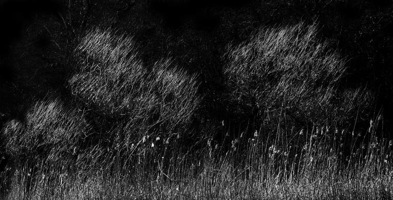 The light was just enough to illuminate the tree branches, but not the background. On the dark background the dried branches of the tree seemed engraved. This light lasted for a short moment as I pressed the shutter release button, and then disappeared forever. The original image is printed as l...