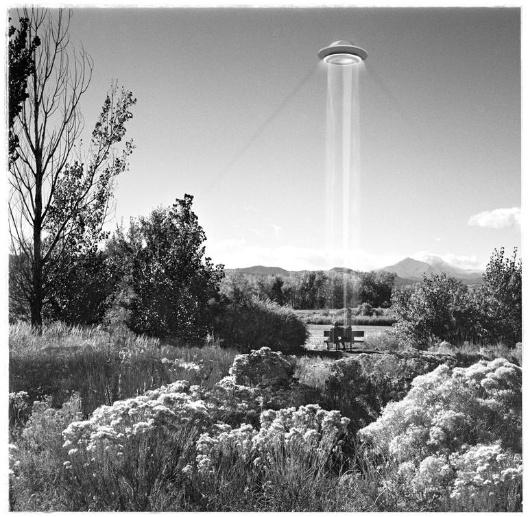I began working on the series Mid-Century UFOs in early 2020 during the start of the pandemic. To me it seemed as though the virus was an alien being that had fallen from the sky descending upon the planet creating havoc, fear and doubt. Making pictures of UFO sightings appealed to me as an apt meta...
