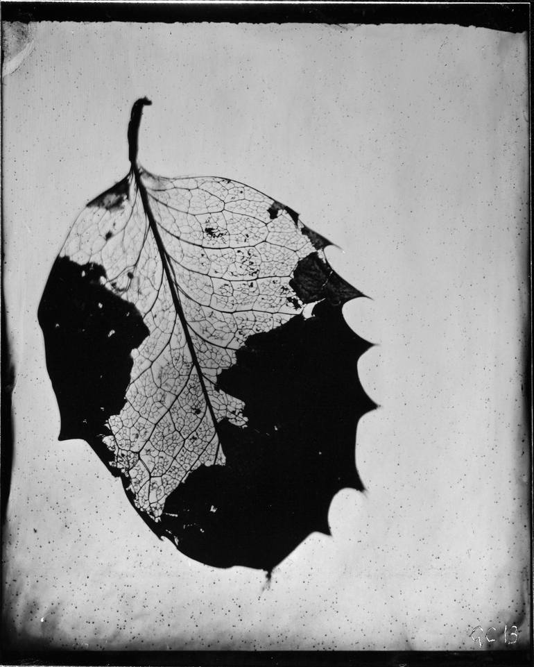 Decayed Holly Leaf framed in oak. Tintypes are one offs. Each tintype is original and unique. Hand coated aluminum plates with collodion. Sensitized in silver nitrate and shot in camera while still wet.