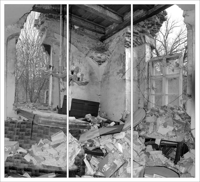 This is East-Germany! Believe it. A very stylish old mansion in the middle of nowhere. Just nobody cares. Its not only that the house is breaking into pieces but the rubbish everywhere, unbelieveable. However, I made these images from three corners and left. You can get this tryptich in one piece ...