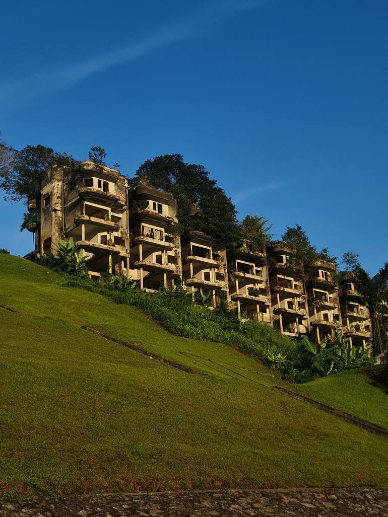 The buildings are dilapidated but under suitable natural lighting conditions and with proper composition, the image turns out to be beautiful. The viewers will find this shot scenic. With the grassy slopes and under the deep blue sky, the captured image turns out to be captivating.