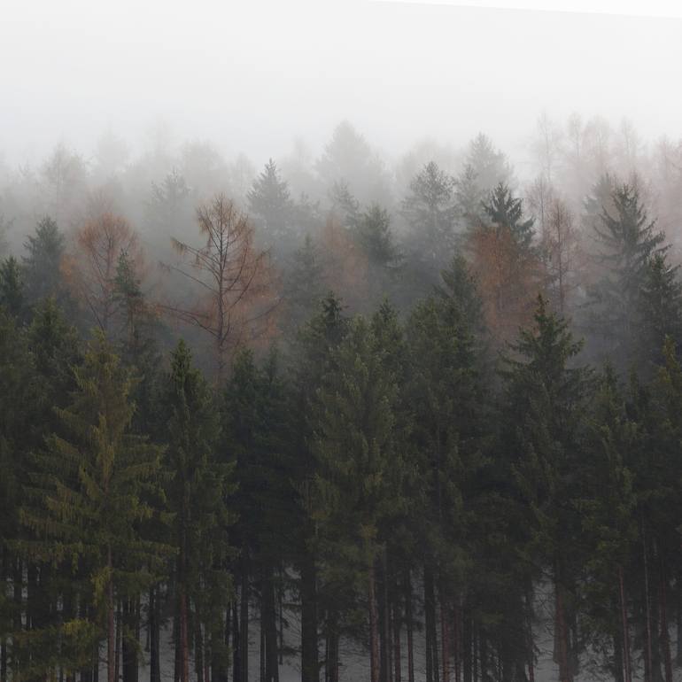 Foggy forest in Dolomites -Italy. Limited edition fine art print numbered and signed by artist (limited to 15+2AP). 5 cm white border around original size. Print on fine art Hahnemuhle paper, Certificate of Authenticity. Also available in other dimension on request.