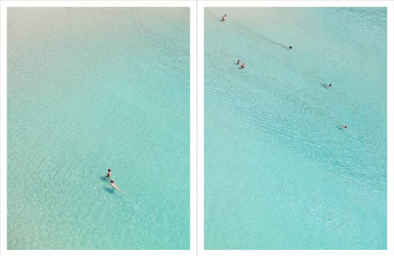 Donousa island, diptych - 2 Artworks, Limited Edition 1 of 25, Signed and numbered on the back. Magical view of turquoise waters found in Donousa island in Greece. People were enjoying the amazing calmness of the beach, small figures as organic elements of the landscape. This listing contains 2 artw...
