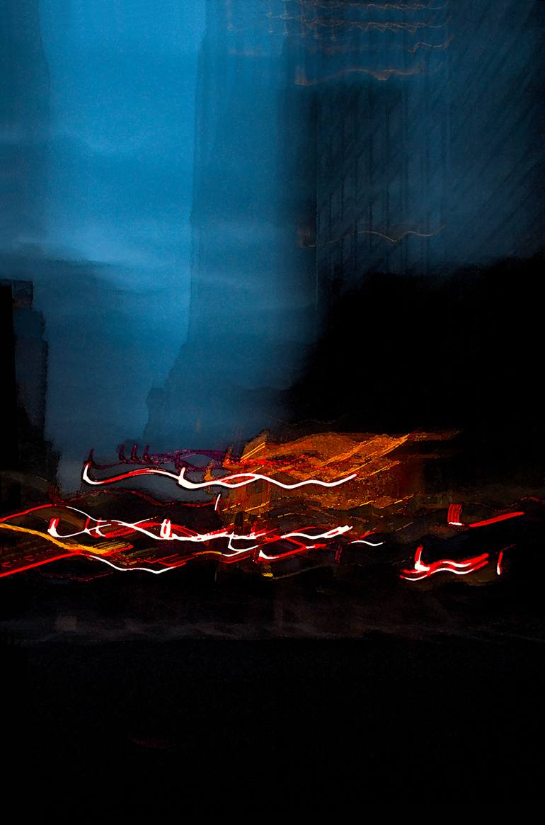 Trailing tail-lights, rush hour, Empire State Building. Keywords: Urban, cityscape, tail-lights, blue, night, abstract Subject: Cities Style: Fine art Medium: Fine Art Giclee print. Material: Printed on Hahnemuhle Fine Art, archival, 315gsm acid free, 100% cotton, museum quality watercolour pap...