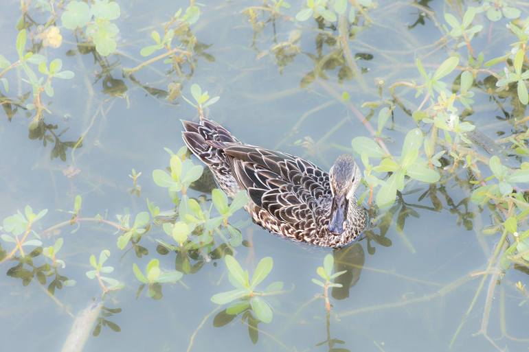When I saw this duck I was immediately struck by the textures in the scene. The water and early lilies seemed so soft juxtaposed to the crisp almost geometric plumage on the duck. It reminded me of a fine Japanese print.