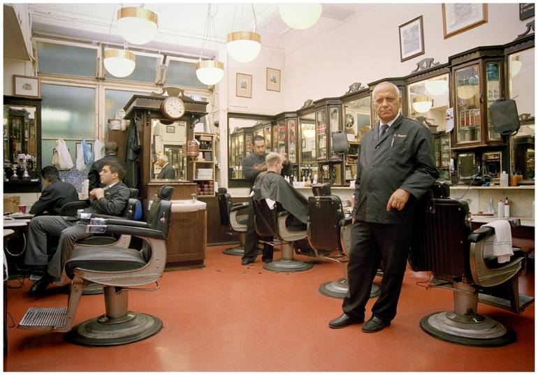 A high resolution scanned original colour negative from the book Still Open - the guide to Traditional London Shops published in 2006. E.Flittner is a barbers in Moorgate in the city of London which opened in 1904