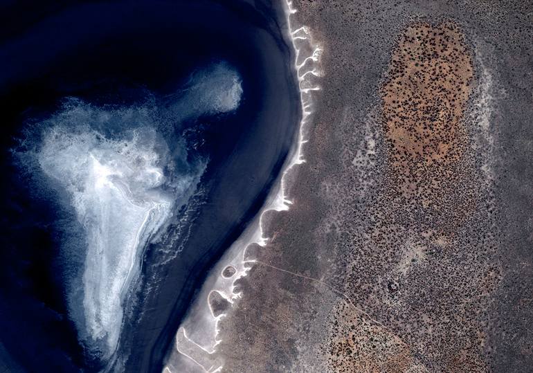 Satellite Photography, without manipulations. Creativity is generated by the spontaneous forms of landscape, through the artist's eye. 1/9 Limited Original Edition Giclée print on Hahnemühle paper 100% cotton on Dibond panel 3 mm, with spacer. Cassette frame (cm 104x140) in white wood with 8 cm of...