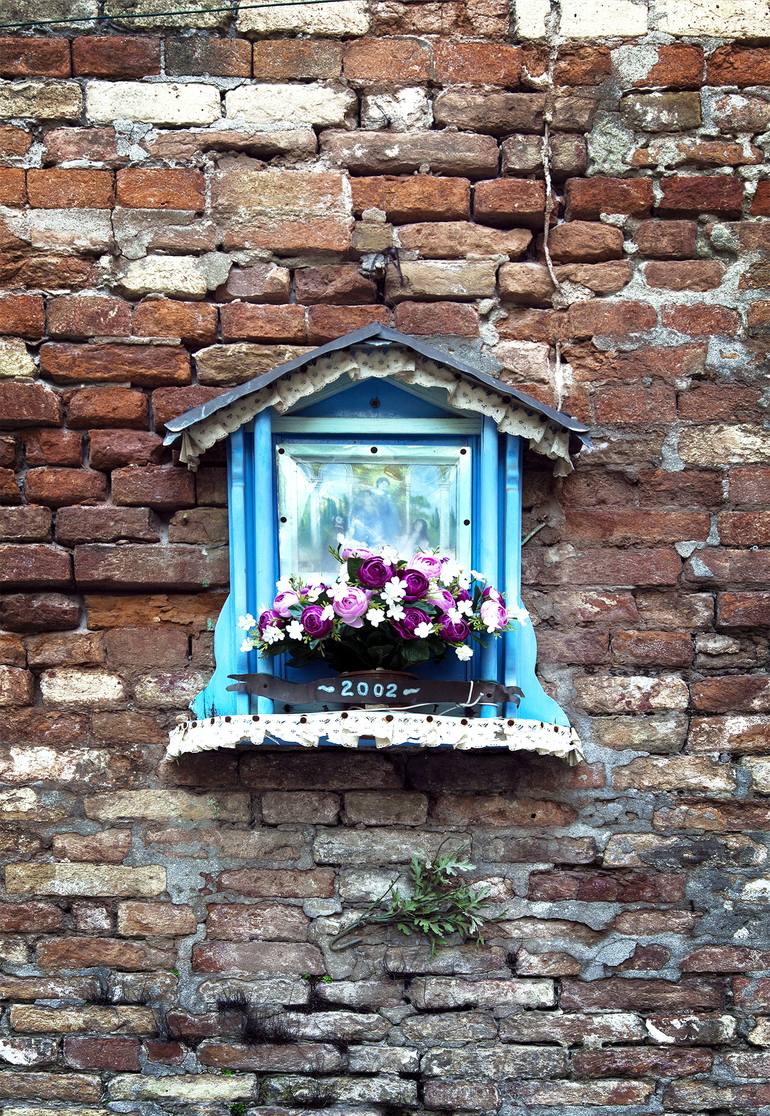 This is a image of a religion Edicola in Venice, the particularity of this photo is in the contrast of colors: the red of the brick wall and the blue of the edicola. This is a Fine Art photographic print, professionally hand printed on fine art luster gallery paper using archival pigment ink and sup...
