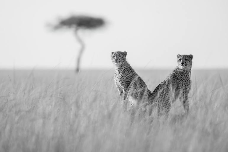 Two of Kweli's cubs watch on as their mother hunts in the early morning sun. For once Kweli’s cubs are following their mothers command to stay behind so as not to ruin the hunt. Although not particularly subtle, their spot on top of the termite mound provides the perfect vantage point from which to...