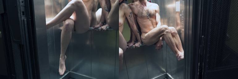 Friends in Elevator in Berlin