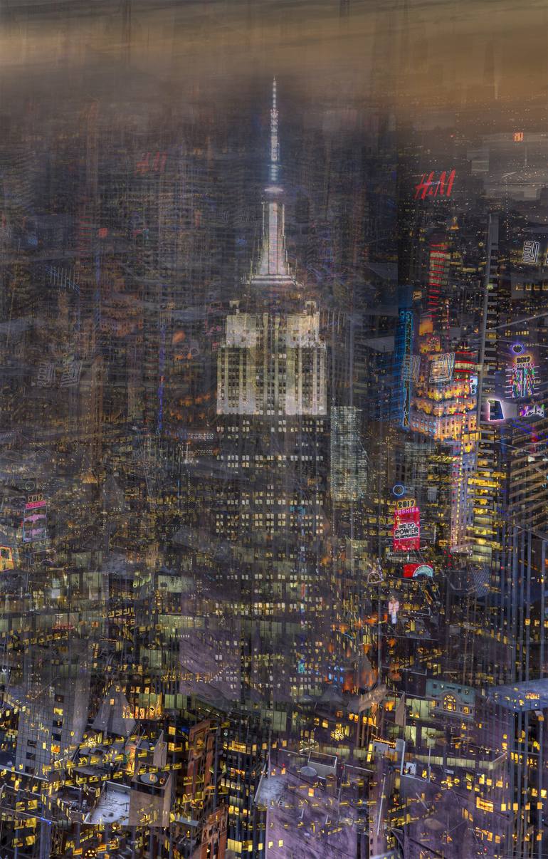 This photograph is a blend of many images taken on the same evening of New York City. I choose to feature the Empire State Building as the central image in this abstract since it represents the city of New York best. This image is offered printed on aluminum mounted on sintra board which brings ...