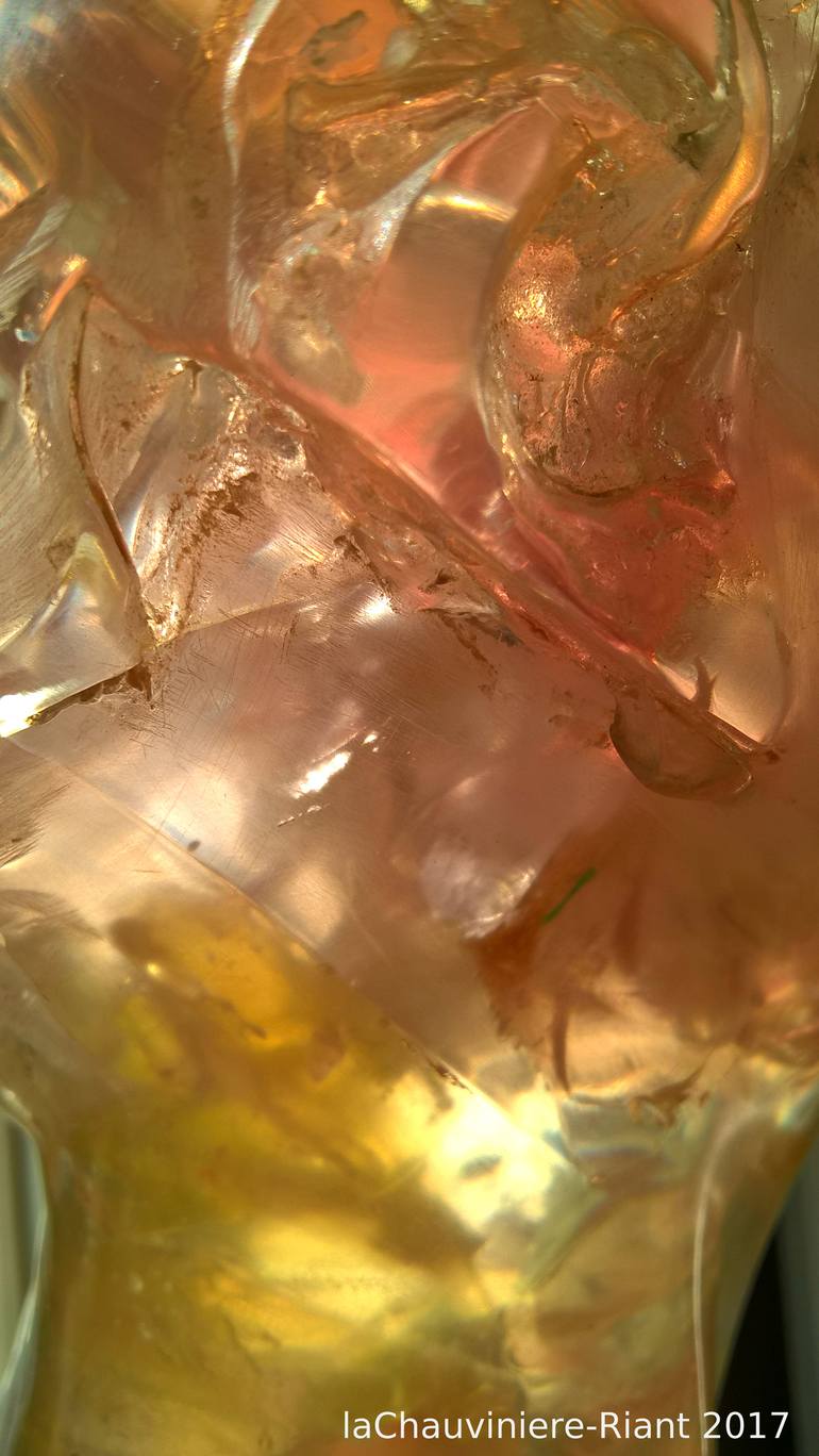 Imagine being suspended in water, encircled by ephemeral objects that glint, gleam , shift shadows, reveal images and illuminate colors. Such is the highly exceptional nature of La Chauvinieres' translucent sculptures and digital art. Each of her pieces is original by virtue of the materials and components more importantly, by events and/or injustices that inspire her creations. Her subject matters are compelling, moving, intellectually demanding and for some, disquieting. As with all important art, her work never leaves a viewer unaffected. The only known artist to be working with torolithe, La Chauvinere-Riant has fused several art forms to create pieces that are unique and uniquely significative. La Chauviniere-Riants empathy for global grievances and exploitations, as exquisitely experienced by individuals, is subliminally evident in each piece. Seemingly disparate elements almost mystically combine to affect each viewer, personally, from within. Impressionistic, inspired images that are uniquely expressed is the essence of La Chauviniere-Riants art. Years of experimentation with the material torolithe has resulted in a unique know-how that has enabled the artist to innovate, creating sculpture from the inside outside. At this point in time, no other artist has achieved dexterity with this unusual material. La Chauviniere, alone, has mastered the treatment of torolithe to evolve pieces that are translucent, yet evocative of watercolor. She has been able to capture interior light, which fluctuates from viewer to viewer releasing highly symbolic messages that connect with individuals visually and intrinsically.