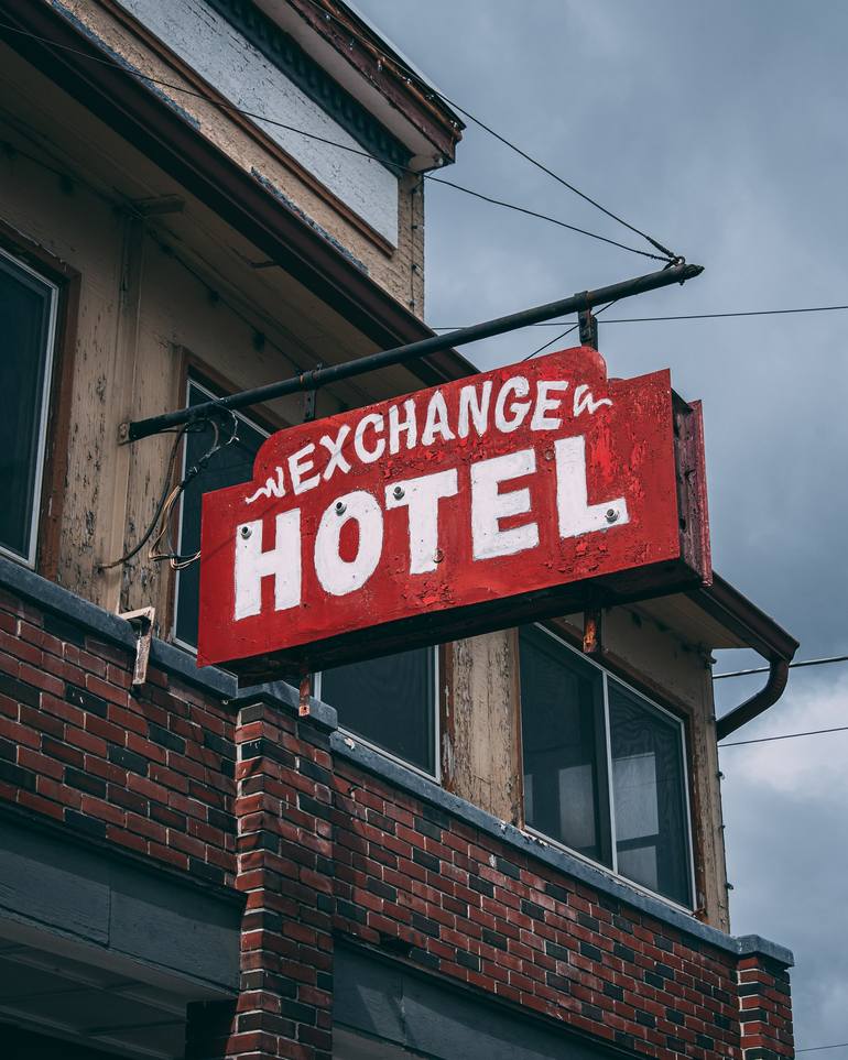 Exchange Hotel sign, in Saugerties, the Hudson Valley, New York - digital photographic print by travel photographer Jon Bilous
