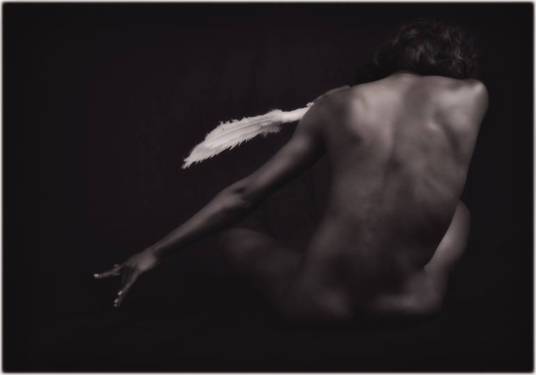 Limited Edition Pigmented Fine Art Print - #2 of 18. UltraChrome K3 Pigment inks on Velvet Fine Art 100% cotton 260 g/m² textured matte paper. Printed, signed and numbered by the artist. This print depicts a female nude with white feather. Her face is hidden. Image size: 20x14 inch Paper size: 2...