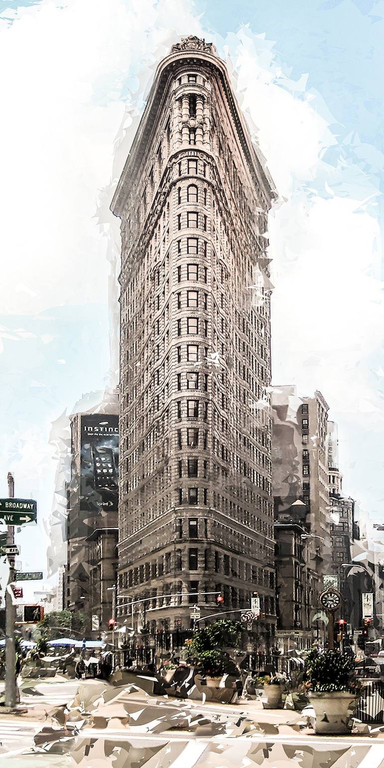 This picture was inspired by the Flat Iron Building in New York. I captured the architecture, the light, the sky, and the unique atmosphere. My photography style is a mix of digital painting and new photography. - The picture is produced as Photography on paper. Photography. Photo on paper . Photogr...