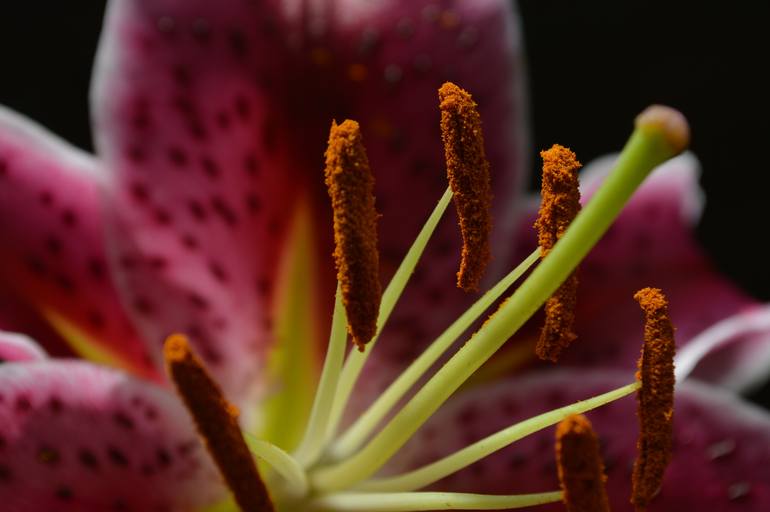 Sometimes it's not the petals of a flower that hold all the interest. While photographing this day lily as inspiration for a painting, I noticed the reproductive parts were as beautiful by themselves as the whole flower.