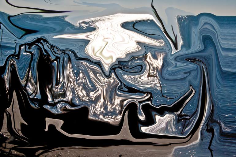 fluid sea, abstraction of a sea shore in winter, sunlight reflections, and blue colors of nature. The original artwork is reproduced in only one copy, so only this one is signed on the back by the author with written confirmation that it is the original in only one copy.