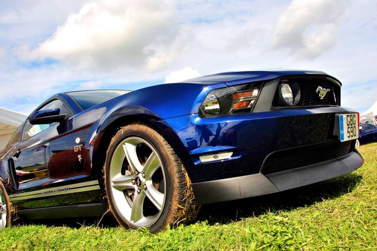 Ford Mustang GT classic American sports motor car front side view photography by Andy Evans Photos Limited edition prints are processed using Hahnemuhle Baryta fine art paper. A bright white based, acid-free and lignin-free paper benefiting from a high-gloss premium inkjet coating combined with a pi...