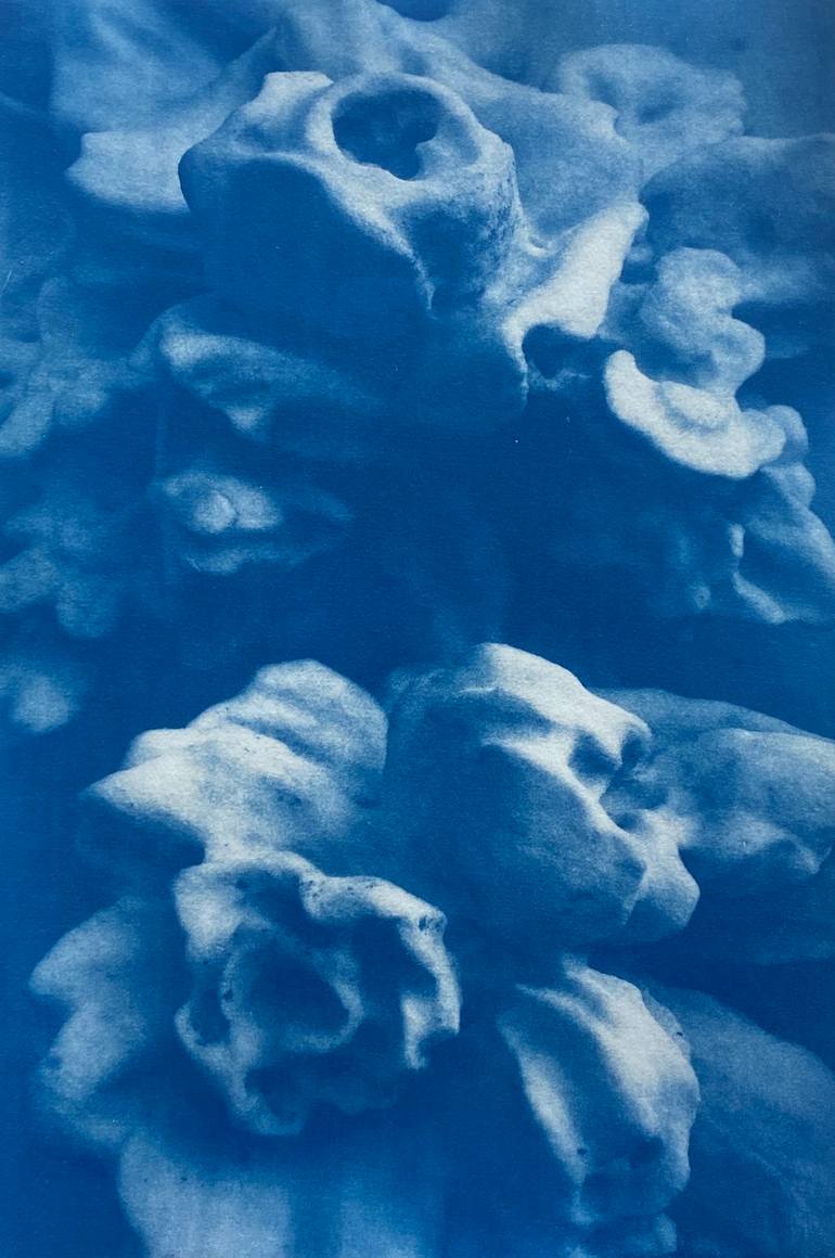 Forever Flowers is a photograph I developed in the Cyanotype method from 1842. This method was primarily used to produce copies of drawings or blueprints. This process is done by coating watercolor paper with iron salts to make the paper light sensitive thereby allowing me to develop a negative wi...