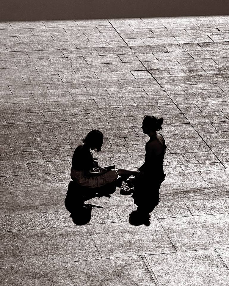 Girls talking in the square on a sunny day in spain