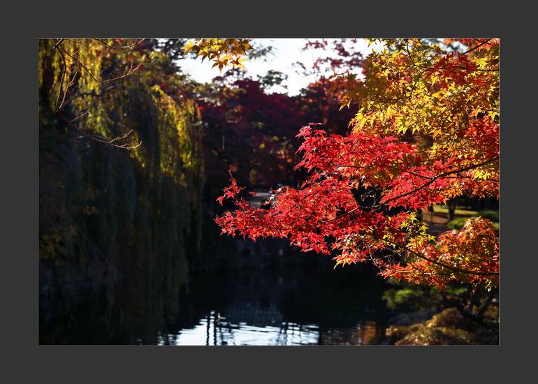 Gentle Autumn Sun The afternoon sun glows warmly yet softly, gliding over the tranquil lake, tinting the ripples with golden hues. Maple leaves blaze red in the fading light, blending with the vibrant yellows of autumn. In this seasonal transition, the water mirrors the sky and earth, capturing the...