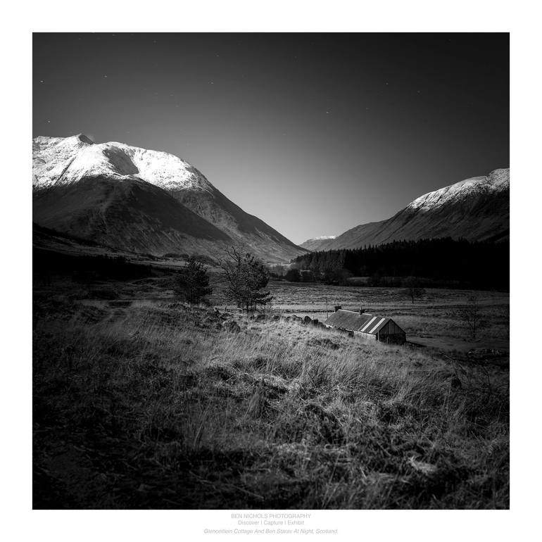 Ben Starav, The snow capped mountain with what looks like a crater on its side has fascinated me for years. It sits at the head of Glen Etive, a glen that was made famous from the James Bond Skyfall film. The croft in the foreground is called Glenceitlein Cottage and sits at an intersection of Glen...