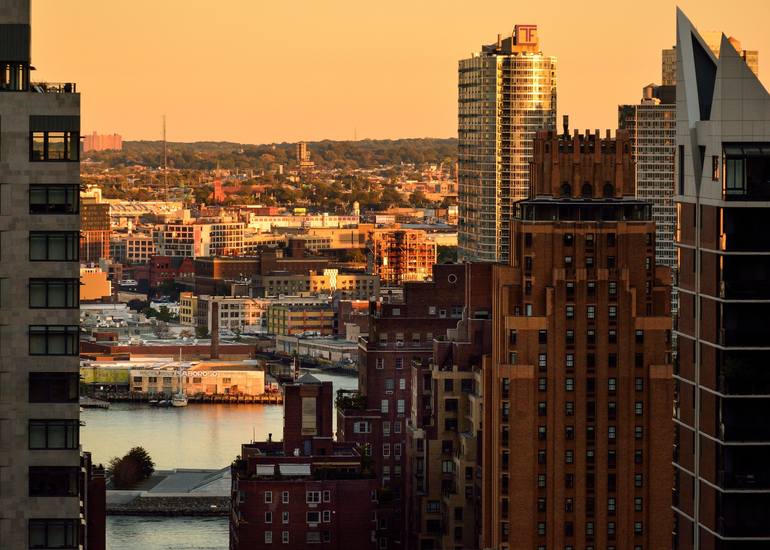 This capture was taken during the golden hour, shortly before sunset, looking east from one of my favorite rooftops in New York City. You can see a glimpse of the East River in the lower left. What I like about this capture is that the scene is not so distinctly "New York," but could represent any b...