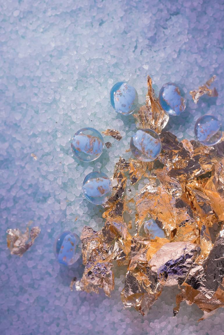 This art work contains of a sea salt, gold leaf, marble glass. All the limited edition prints covered (hand painted ) with the gold leaf .