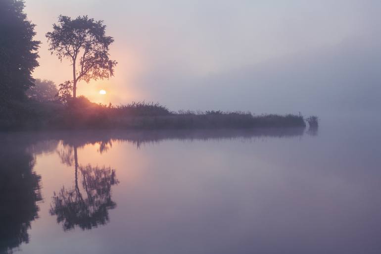A brilliant sunrise cuts through the fog on an idyllic lake in Virginia. All large prints are an edition of 3, and are available in 20x30, 32x48, 40x60 & 48x72 (or similar size depending on the format of capture). All images medium format film camera or D800, and prints provided will be on top qua...