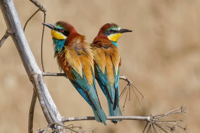 Bellissima e coloratissima coppia di gruccioni. Stampa in "Limited Edition" a scelta su carta fine art Cotone o Baritata 310 grammi. Tutte le stampe sono realizzate con inchiostri originali certificati. Le stampe Fine-ART sono corredate di certificato di AUTENTICITA' dell' opera (DIGIGRAPHIE).