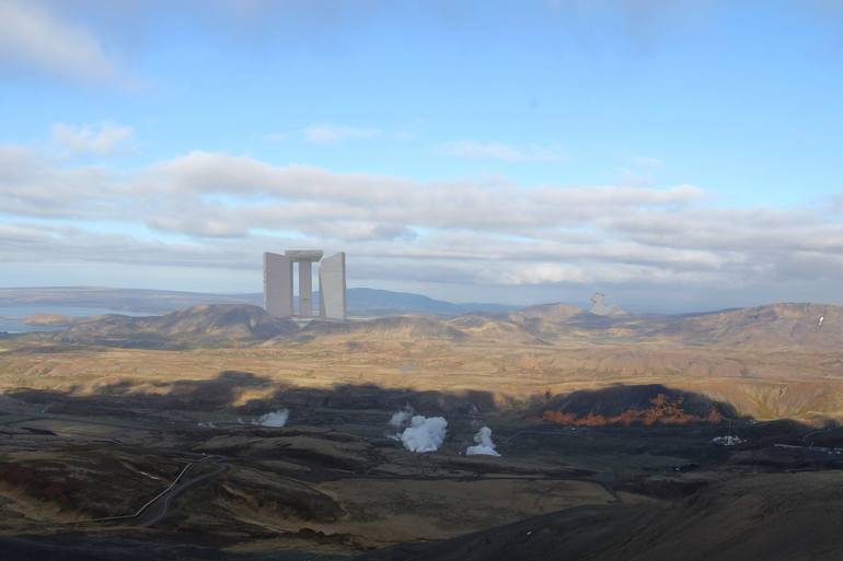 Guidestones and Sphinx in Icelandic Thermal landscape