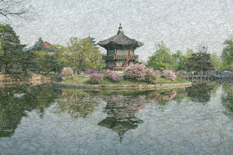 The artist created a winter landscape with a unique feel along with the spring landscape of Hyangwonjeong in Gyeongbokgung Palace, a palace of the Joseon Dynasty, and Hanji, a traditional Korean paper.