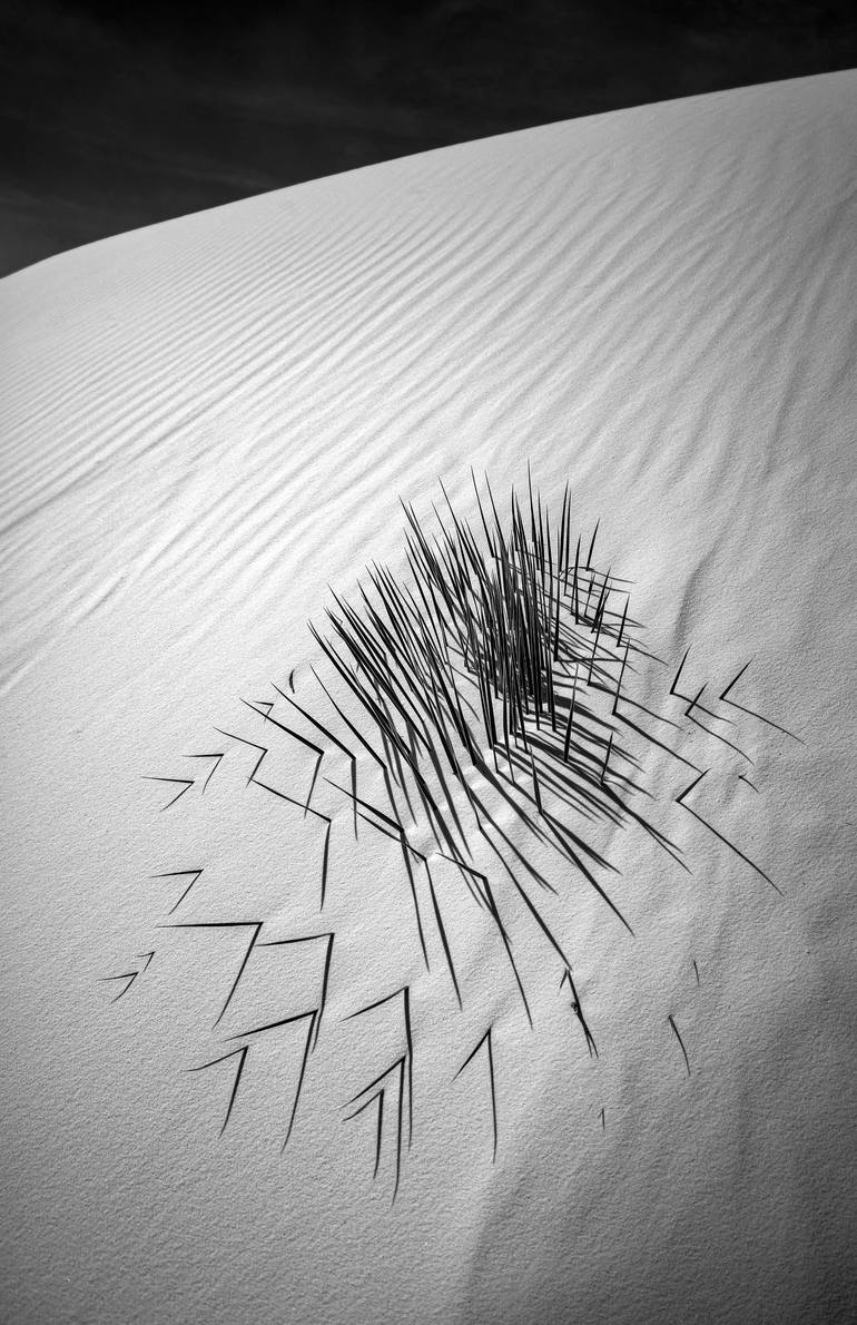 My elegant black and white abstract nature art of desert dunes for your walls: I captured this splendid scene amongst the remote white sands of Southwestern USA, planet Earth! Original, unique art by Murray Bolesta. This is a signed, limited edition art print at paper size 30 inches wide by 45 inch...