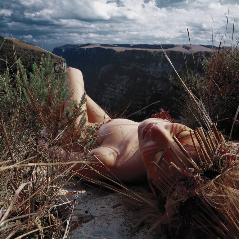 In the south of Brazil we have the trimmed ones of the mountain range, they are mountains that have the highest part a straight aspect. I used the body of a beautiful woman to break the straight line and also to value the canyon that is very beautiful, with the perfect symbiosis of nature with the human body. Photographed with color transparent film and Hasselbad camera, Hell cylindrical scanner in CMYK colors, transformed into RGB, in several layers to strengthen the naturalness of the scene.