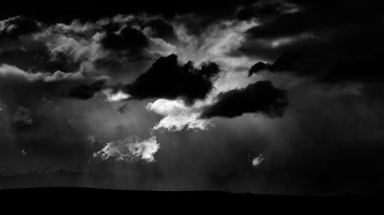 Rain flows down to the earthj from a storm high above the Kakanui Mountains in North Otago, New Zealand. Even as the clouds empty, new wraiths are formed by the heat of the sun breaking through the tumultuous battle taking place in the heavens. Someone watches from above.