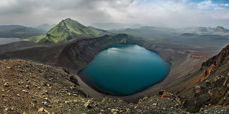 The Hnausapollur (Bláhylur) crater in Landmannalaugar is located in one of the most internal, most beautiful and wild areas of Iceland where you can only go in summer and only with 4x4 cars.