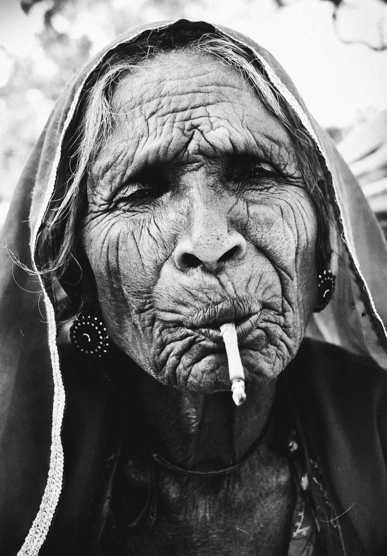India is an awesome place to make photos. To get the best shots it is always a great idea to rent a motorbike and leave into the countryside. I have done this and stopped at this little village where I met this great woman. With some cigarettes I gained her trust before making her immortal with this...